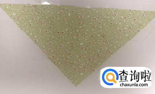 找一块正方形的花布,一个角往上对折,折成三角形。