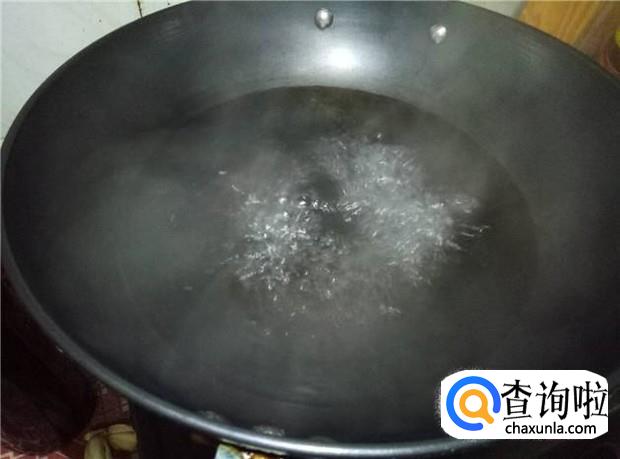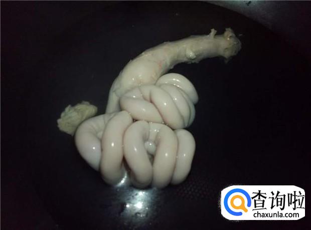 锅里烧开一锅水,放入生肠再烫一分钟。