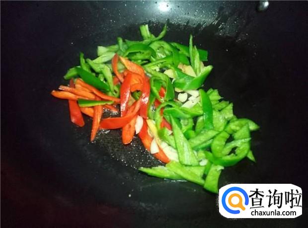 然后再把辣椒倒入锅中,把辣椒味给炒出来。