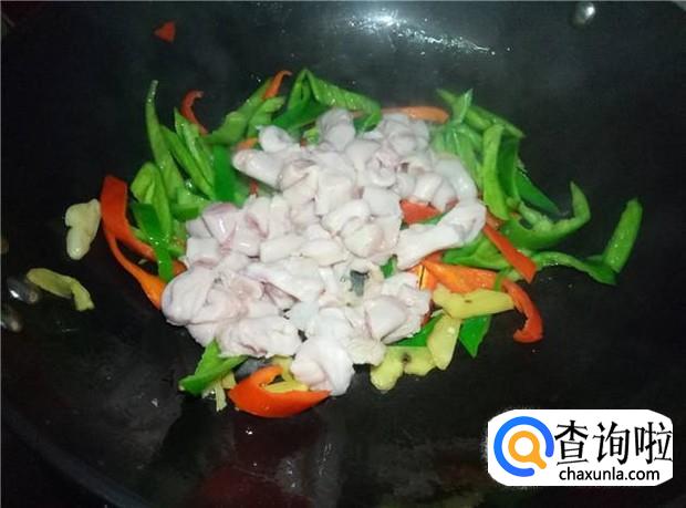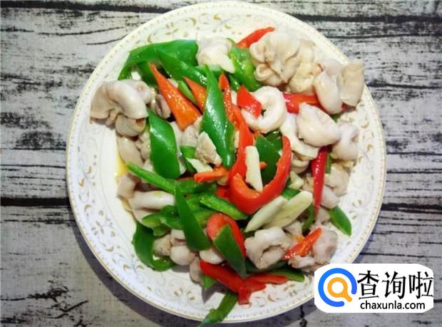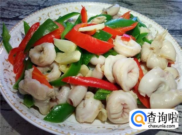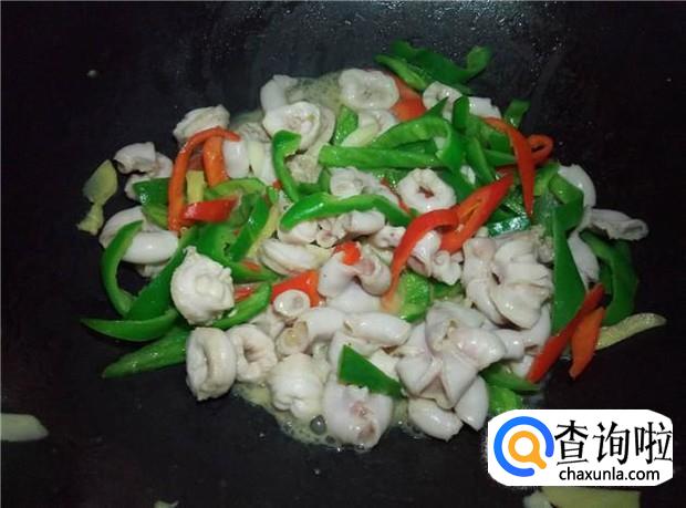 生肠、青辣椒、红辣椒、姜、蒜、花生油、酱油、蚝油、料酒、生粉、盐
