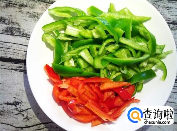辣椒清洗干净,去掉辣椒籽,然后切丝,备用。