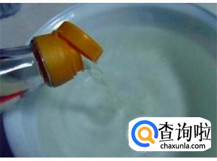 将白醋倒进水里面,白醋的量宁多不可以少,第一次泡的时候小半瓶白醋就可以。