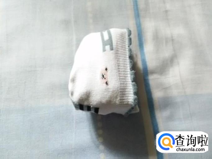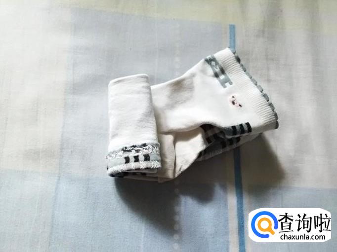 把下面那只袜子的袜口从左侧翻上来,套住两只袜子,一直套到右侧,把两只袜子都包住,就可以了,这样叠,整洁又漂亮。