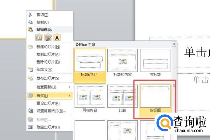 弹出的界面,我们可以看到里面有很多版式,我们点击选择仅标题的版式;