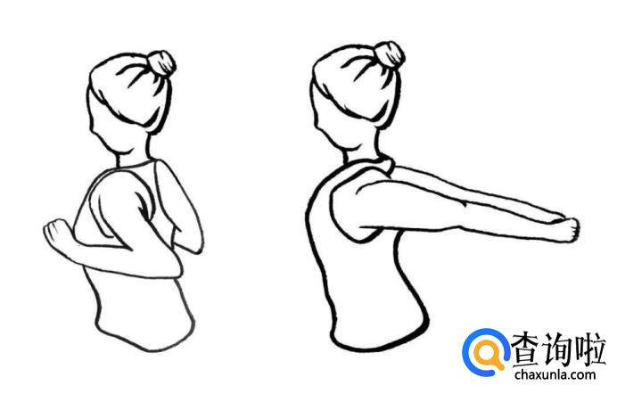 扩胸运动:弯曲两肘手臂抬高与肩膀齐平,两肘缓缓向后拉尽量使两边肩胛骨并拢,大胸肌得以拉伸,从而达到矫正驼背的问题。这个动作一次重复做到30次就好。