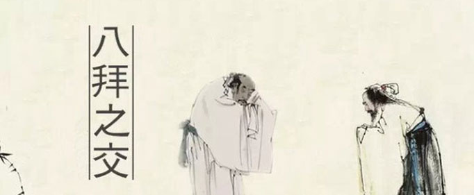 八拜为向东、东南、南、西南、西、西北、北、东北八方各行一次叩拜的亲缘缔结仪式,现为结交的代称。也有向古代八个结拜兄弟学习的意思,分别指知音之交、刎颈之交、胶漆之交、鸡黍之交、舍命之交、生死之交、管鲍之交、忘年之交。