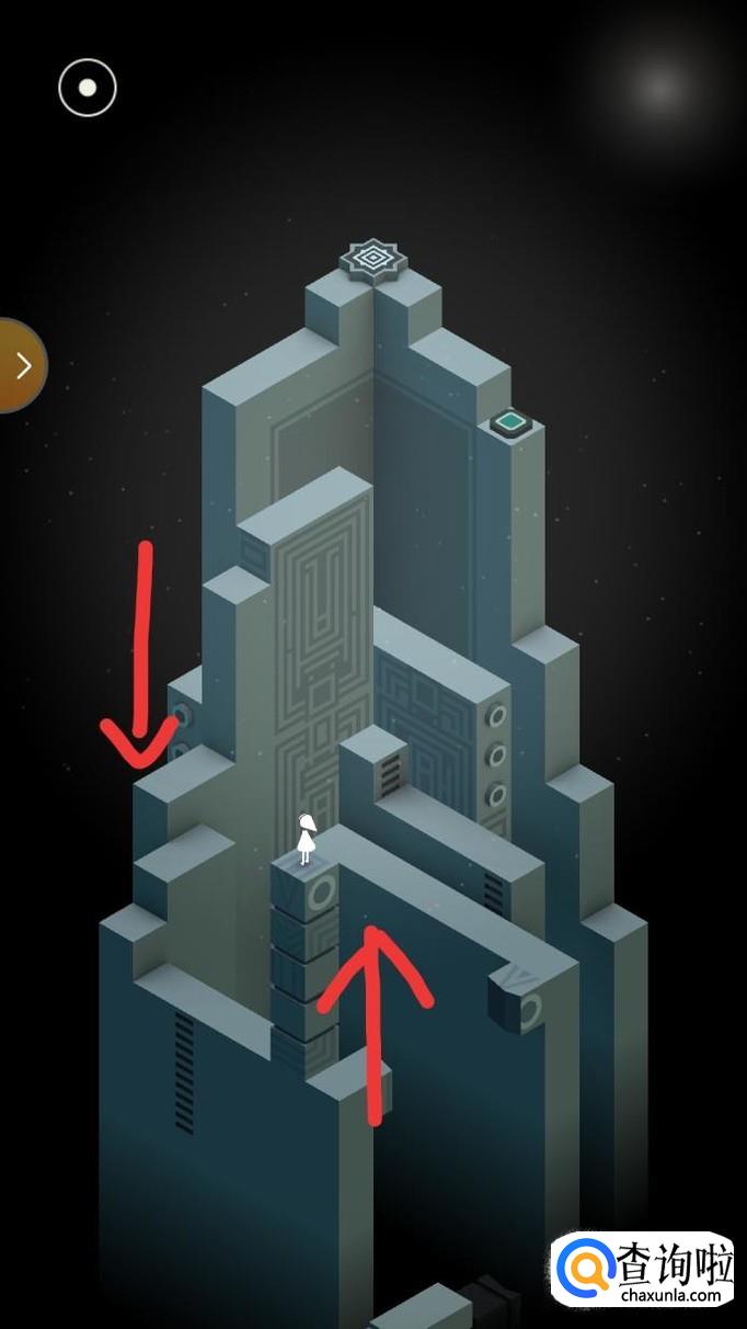 当艾琳到达移动板块后,滑动移动版块上移,到达前方小方点,转动出楼梯。