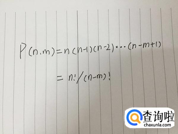 Pnm=n×(n-1)....(n-m+1);Pnm=n!/(n-m)!(注:!是阶乘符号);Pnn(两个n分别为上标和下标) =n!;0!=1;Pn1(n为下标1为上标)=n
