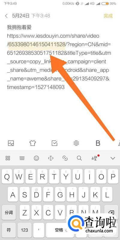 链接中的英文单词“video”后面的一串数字就是作品ID。