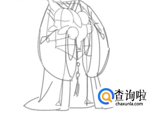 与坐着的角色相比,站立时,古装的下坠感更强,在画服装时可以有意的将向下的线条拉长。