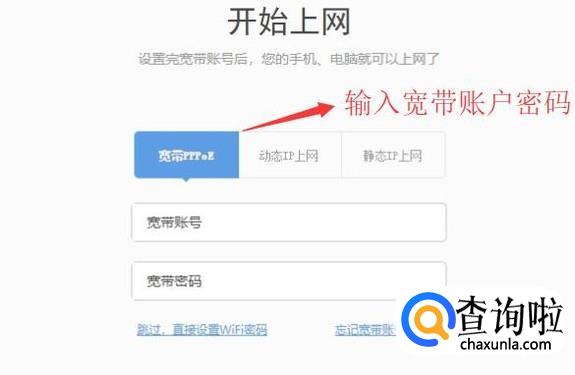 然后回进入宽带账户的登录界面,我们输入运营商给我们的宽带账户以及密码即可,如下图所示
