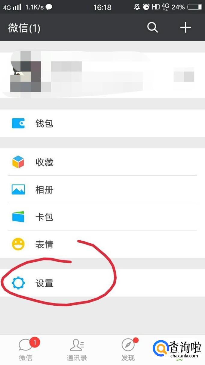 首先打开微信,点击我的,然后点击设置。