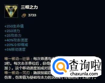 在出装方面,出门装建议带多蓝盾、血瓶,保证刀妹的续航能力,前期要将三项之力、魔抗鞋做出来,到了中期要出破败和振奋铠甲,后期的话出亡者板甲和护手。