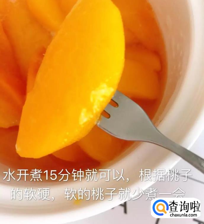 等到锅中水开,继续煮15分钟就可以了。如果你们选用的黄桃比较软,可以少煮一点时间。