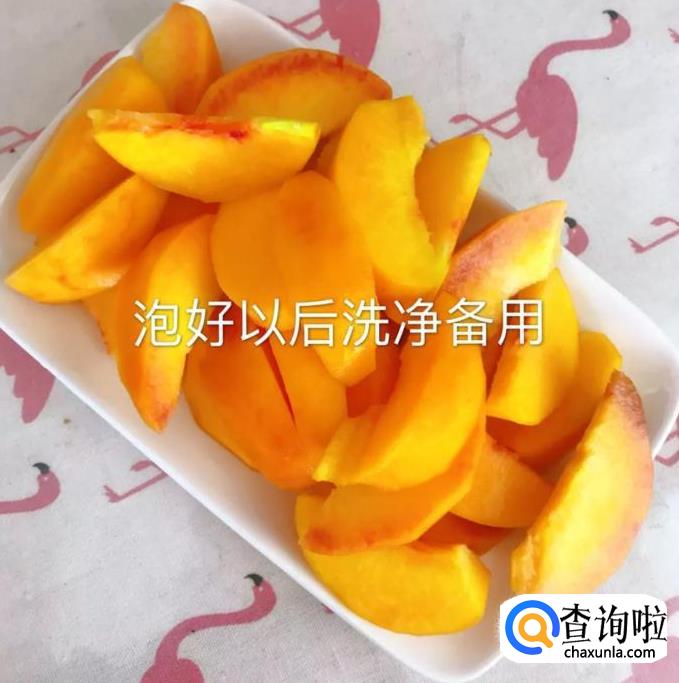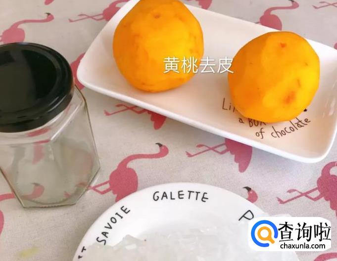 首先将黄桃去皮,如下图所示。