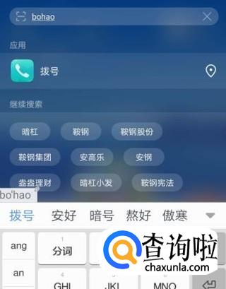 调出搜索栏后,在搜索栏里输入“拨号”。