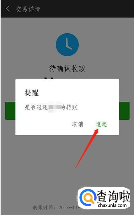 点击转款,刚点击时不会立马收款的,转账是需要二次点击才会收款到自己的钱包;打开之后我们可以看到下方有个“立即退还”,点击这个。
