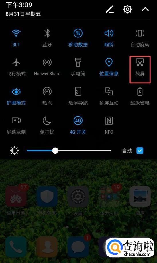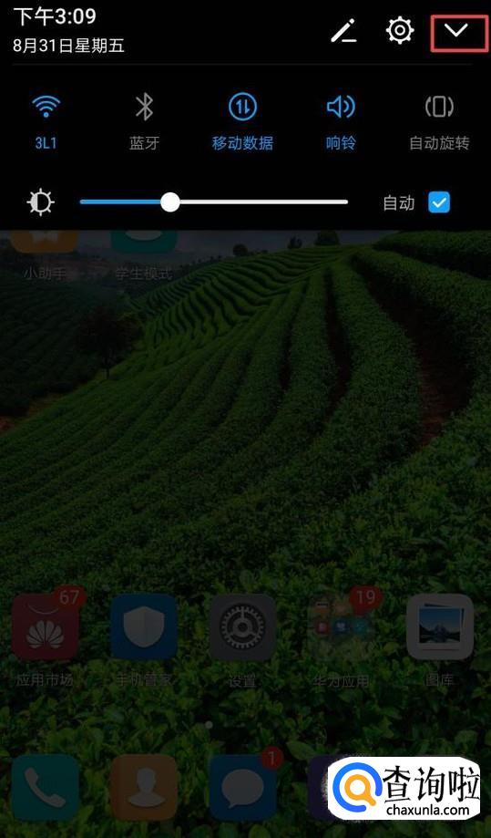 首先,我们打开我们的手机,然后我们在手机的上方朝着下方滑动一下;