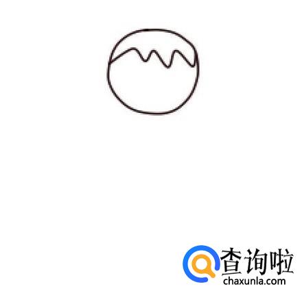 在头发下面,画两条向下弯的弧线,表示眼睛,在眼睛下面,画一条向上弯的弧线,表示嘴。