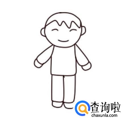 在胳膊末端,各画一个半圆形,表示手。小男孩的轮廓就画完了。