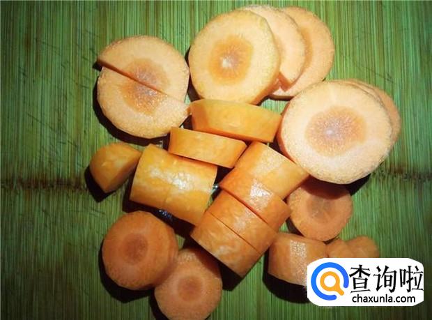 胡萝卜削皮,切成小圆圈形状。