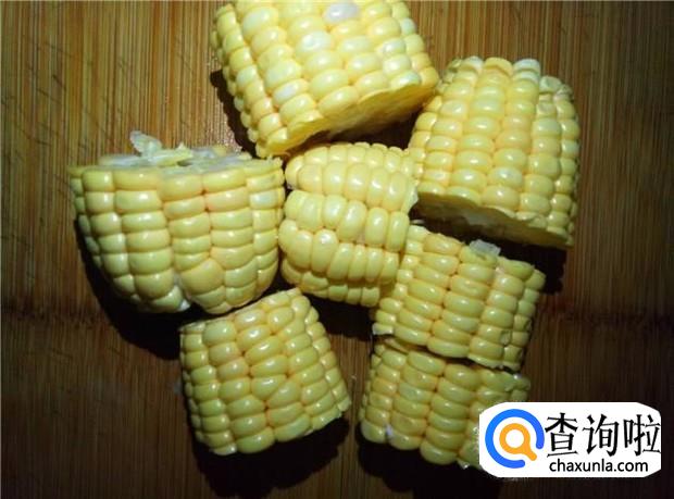 玉米清洗干净,切成一节节,备用。