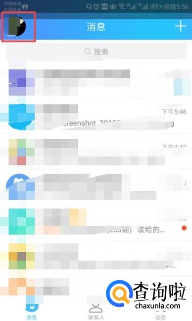 首先,我们打开我们的手机QQ,然后我们点击左上角的头像;