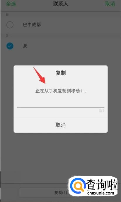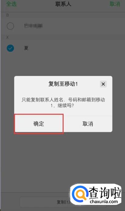 根据提示,选择”确定“就可以看到提示:”正在复制中“,复制联系人就完成了。