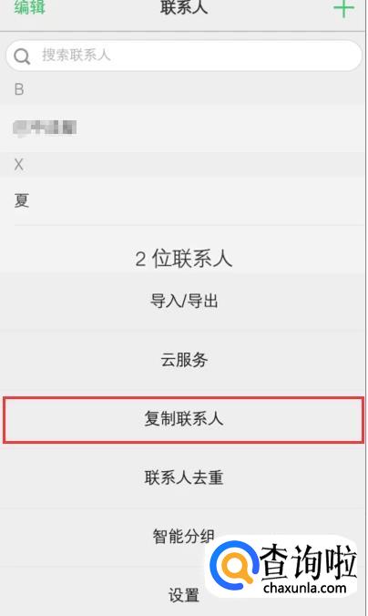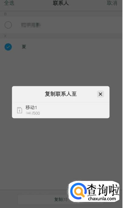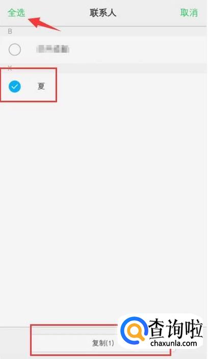 选择你要复制的联系人(也可以直接点击左上角的全选),选择完成后点击“复制”。
