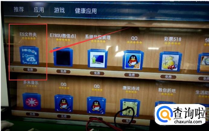 先打开智能电视或者盒子里的市场,或者用安装当贝市场,然后在市场里找到ES文件浏览器并安装。
