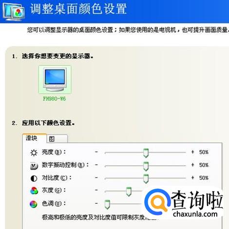 这个界面里的“对比度”、“灰度”、“色调”都有关颜色的设置,试着调整一下,直到自己满意。