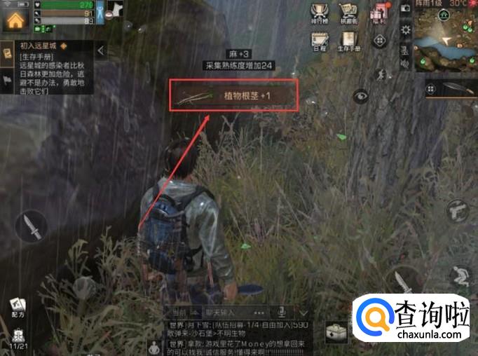 成功采集到麻后,此时玩家有几率获得植物根茎。