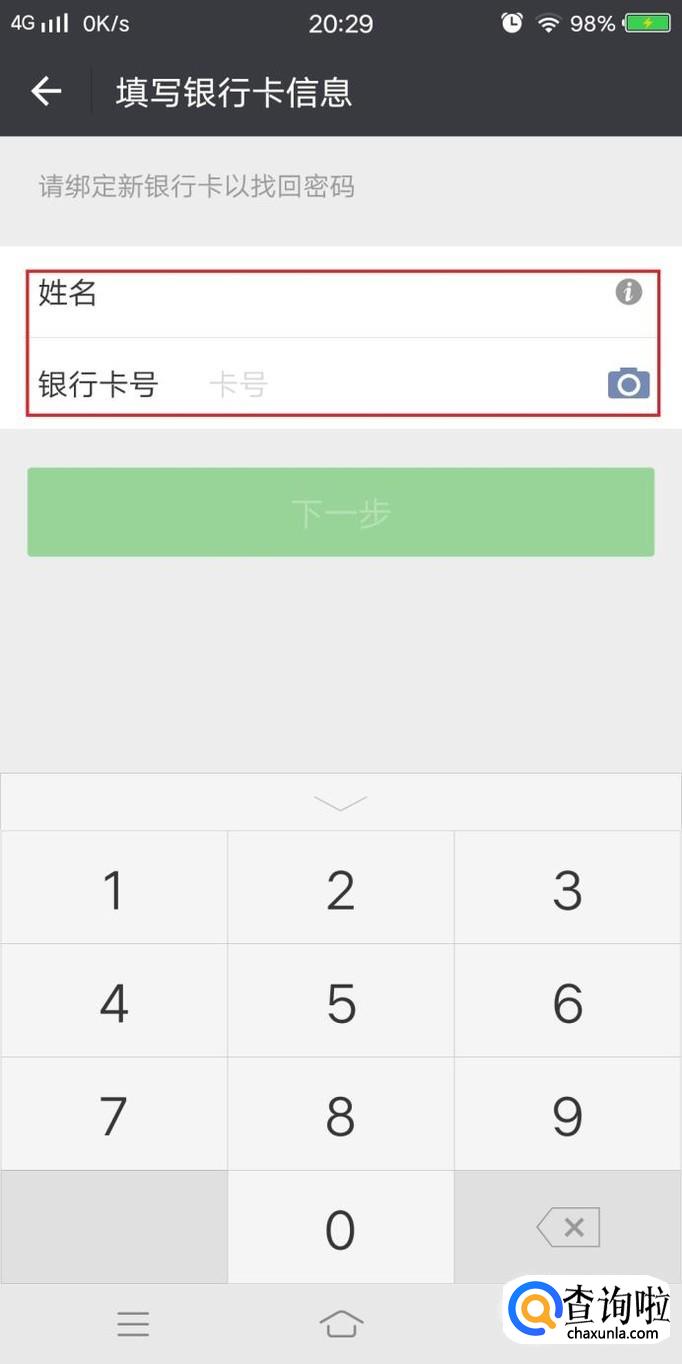 进入忘记支付密码后,点击进入添加银行卡,如图所示