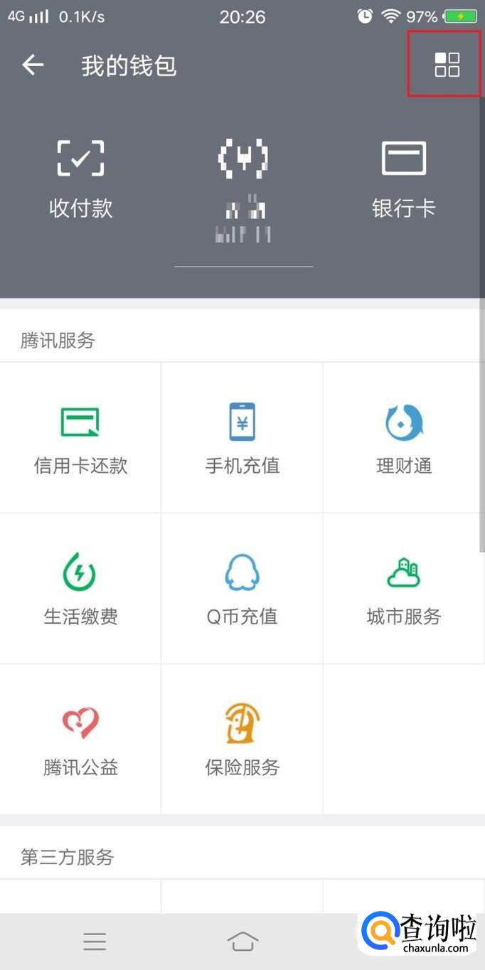 进入我的钱包后,点击右上方“支付中心”功能键,如图所示