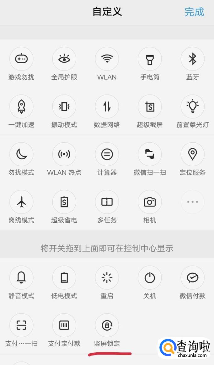 有的手机可能看不到这个功能,没关系我教你去打开它。点击打开自定义,把竖屏锁定拖到上面就能在控制中心显示了。