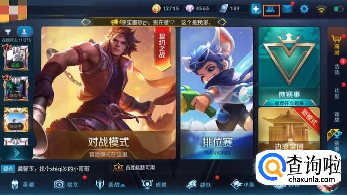 首先我们打开王者荣耀,来到游戏大厅,就是这个界面,点击右上角的朋友人像标志。