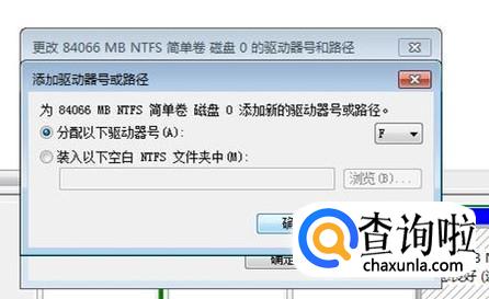 在“分配以下驱动器号”右边选一个盘符,就选原来的F即可,点“确定”。