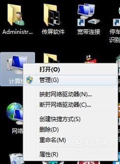 我们在桌面的“计算机”上右键单击,在弹出的菜单里点击“管理”。