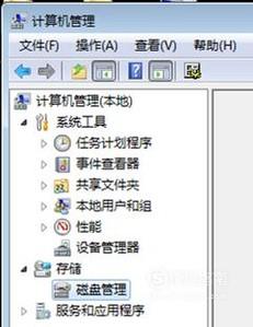 然后在计算机管理界面中点击左边“存储下”的“磁盘管理”。