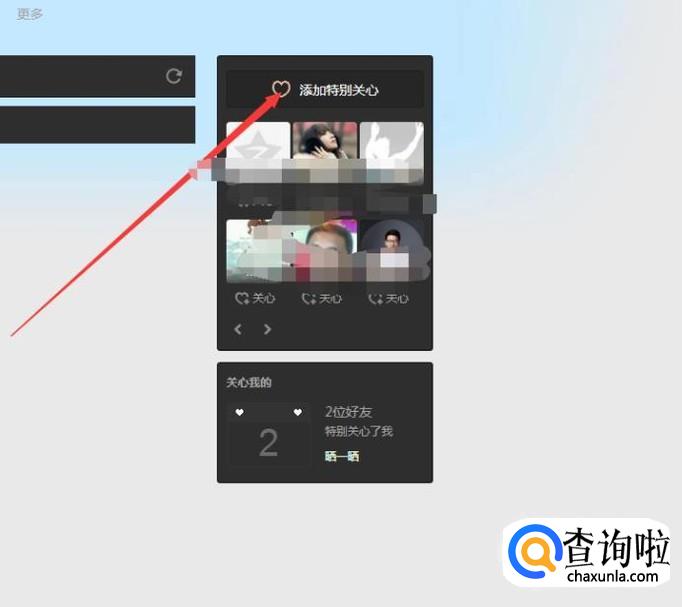 然后进入之后在空间的右边有一个添加特别关心的人,如下图