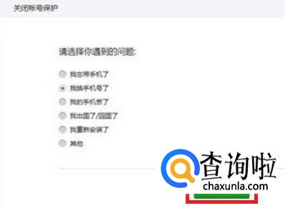 然后再点击页面底部的”继续“按钮,再往下即可将我们之前开启的帐号保护关闭,如果即便换了新设备也可登陆了。