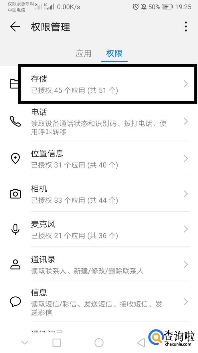 然后点击存储,看看手机的存储权限对于哪些应用开启了。