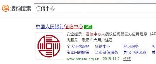 打开搜狗浏览器,在搜索框中输入“征信中心”,点击“中国人民银行征信中心”的官网进入页面。
