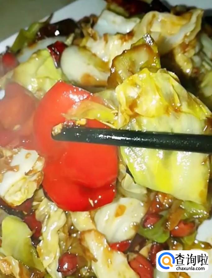 包菜,炸好的花生米,红辣椒,葱姜,干辣椒,酱油,蚝油,白糖,陈醋,盐,鸡精,蒜