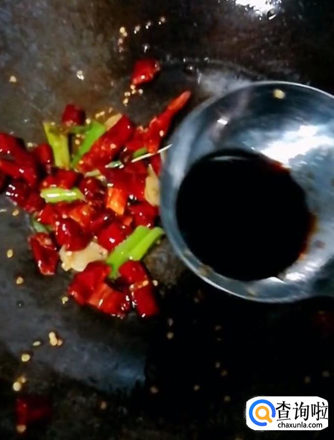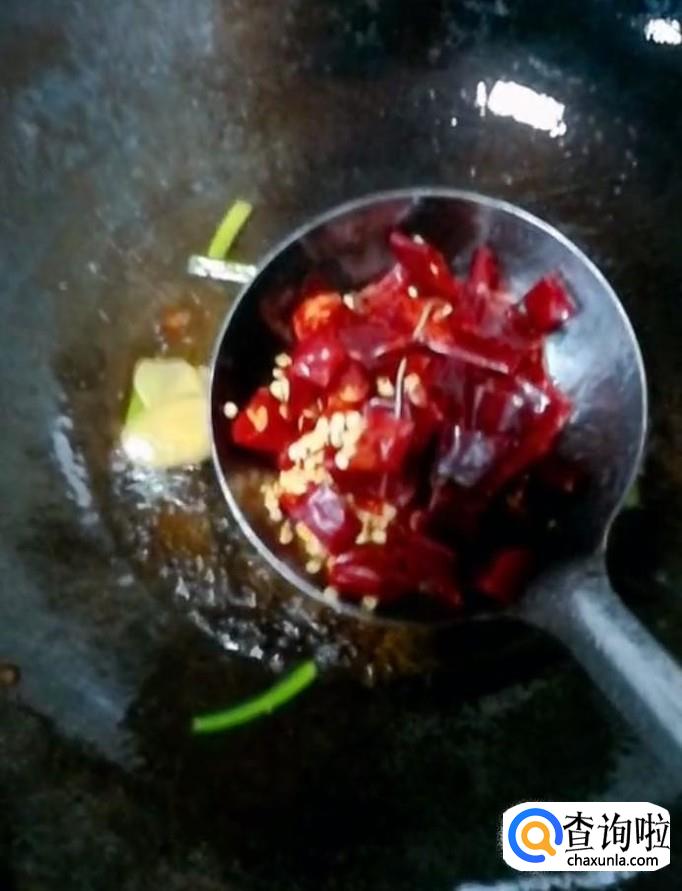 然后我们在锅中留少许底油,放入葱姜,干辣椒,翻炒出香味