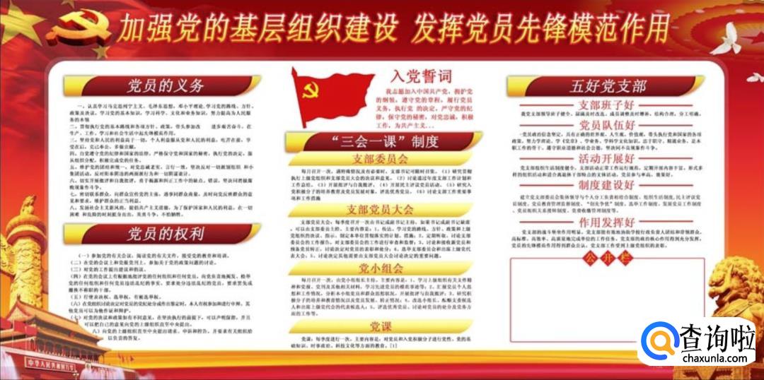在墙上还要贴党员的各种制度、支部组成、支部委员分工、各种会议制度,对称贴就行了,比较严谨。