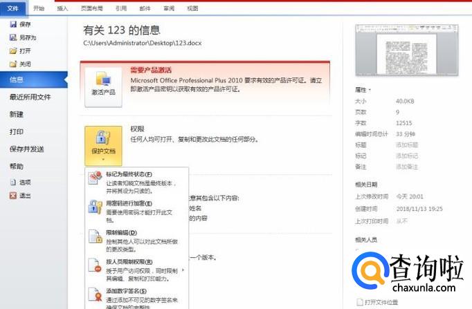 首先打开一个你想要加密的文档。