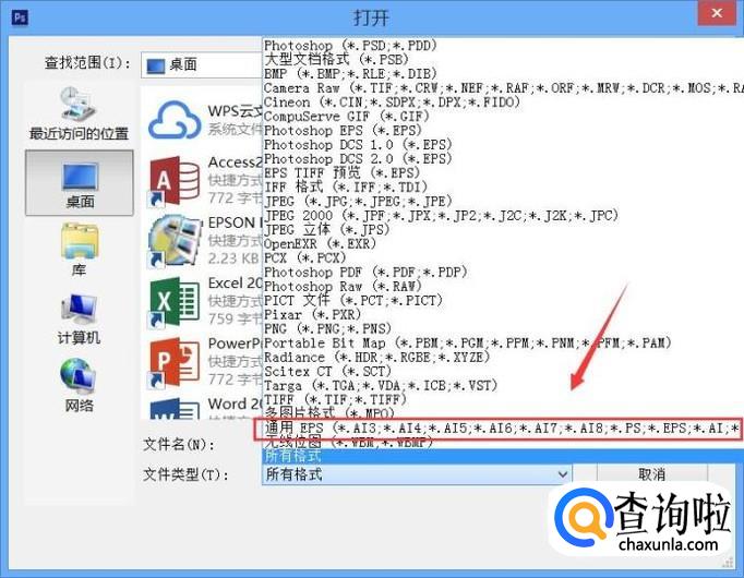 点击打开选项在弹出的对话框内我们找到文件类型选项,点击该选项在其内选择通用型,选项,如图所示: