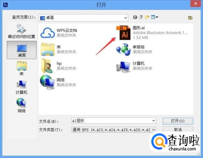 选择好文件格式之后在打开对话框内找到AI文件,如图所示: