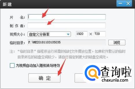 然后输入片名,制作者,点击确定,再把视频拉入爱剪辑中进行其它处理后保存即可。